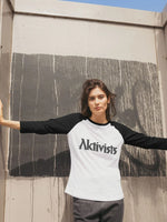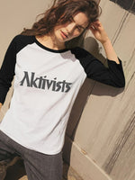Hit a home run with our Women’s Long Sleeve Baseball Tee, featuring classic black sleeves, a white chest, and a bold black Aktivists logo in the centre. This tee is crafted from certified organic cotton, offering a soft and comfortable fit at 155g/m2.